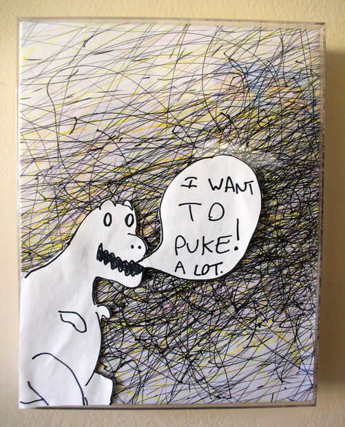 He montado y había colgado dibujos de la primera ronda en Galería de arte de mi espacio de estudio sin permiso. Un signo de tonto fue creado.