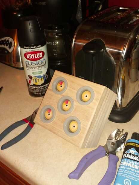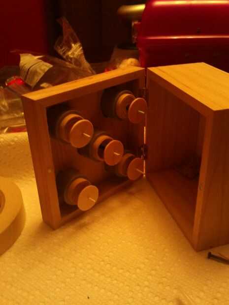 A partir de una caja de madera de una tienda de artesanías y algunos accesorios eléctricos de la ferretería, iniciado con los calibradores de pantalla para medir las fuerzas etéricos se generar para controlar el clima. No tengo una imagen, pero los indicadores cuenta con un motor montado en la parte posterior de la caja para conducir un brazo con imanes. Cada uno de los indicadores también tenía un pequeño imán. El movimiento de los imanes manejar las agujas.