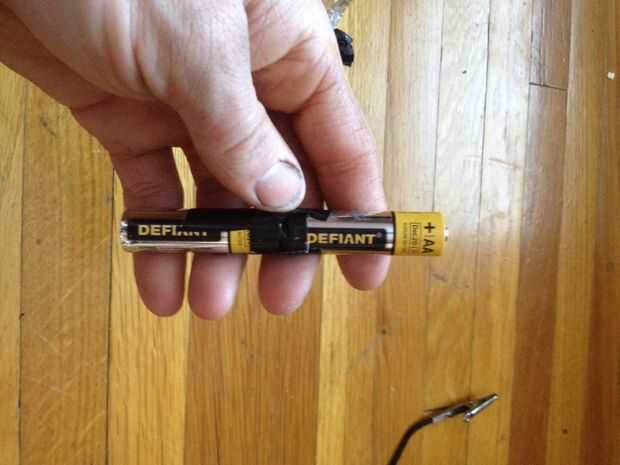 Finalmente dependiendo de lo que su utiliza para el cableado de hacer conexiones fáciles sobre el lado abierto restante de las baterías. Estaba usando cables con pinzas cocodrilo que recomiendo para facilitar la conexión del cable a los objetos. Si sólo usas alambre por su mismo yo cinta adhesiva el cable directamente a los extremos abiertos de la batería. Esto se puede ver en la foto final de arriba.
