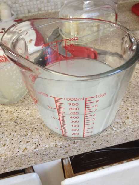 La solución de agua que me parece que funciona mejor es 2 cucharadas de sal de mesa a 1 vaso de agua. Mezcle la solución hasta que se disuelva toda la sal.