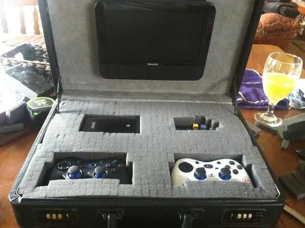 Cuando finalice el proceso de visualización, coloque los componentes con maletin y cables por debajo de la espuma. Si la espuma se arrugar_, tallar lejos más de la parte inferior de la espuma para crear una pequeña "cueva" para los cables. Esto hará que la espuma poner el plano y se verá mucho mejor.