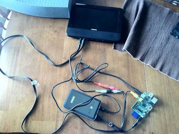 La batería viene con cables que pueden usarse con la pi y la pantalla. Ejecutar la pantalla de corriente usando el cable de CC con la punta correcta. Ejecutar que el Pi off USB equipado con el conector micro usb.