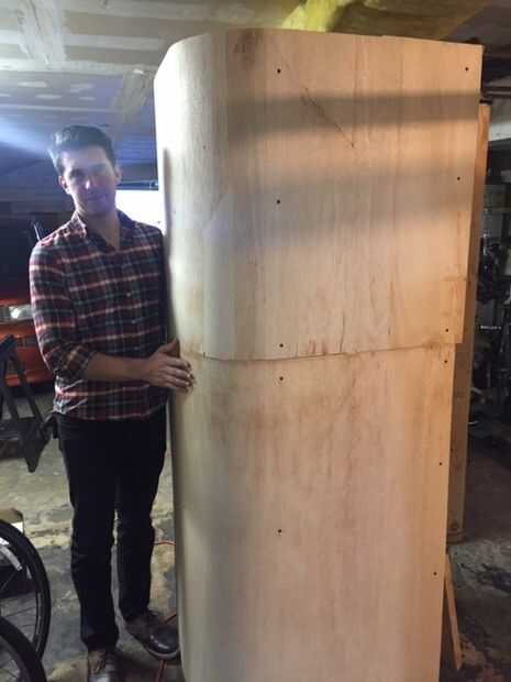 Construimos el marco exterior, con las curvas de la máquina de escribir tradicionales, mediante el diseño de L en forma de tirantes de madera que nos ha permitido a la Junta de meneo a nuestras especificaciones de la curva. Luego lija la madera y meticulosamente llena cualquier agujeros o grietas antes de pintar con una pintura muy vidriosa para darle un brillo metálico. La estructura exterior fue construida como cuatro esquinas separadas, un pequeño muro frontal, dos laterales inclinadas y una pared posterior interna y externa. Entre el interno y externo pared posterior fue un espacio para colocar el cableado, Raspberry PI y los altavoces.