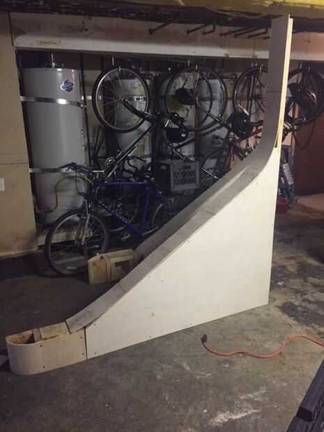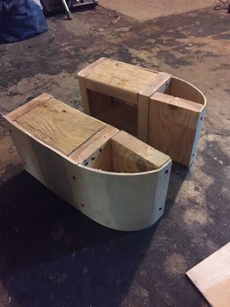 La estructura interior fue construida con 4 X 4 como las piernas, que fueron cubiertas con 2 X 4 y madera contrachapada. Esta parte de la estructura siguió un formato de ampliación estadio simple, donde simplemente elevamos las piernas para cada plataforma adicional. Una vez que estas plataformas fueron construidas, hemos perforado boca abajo baldes de pintura en la madera como asientos.
