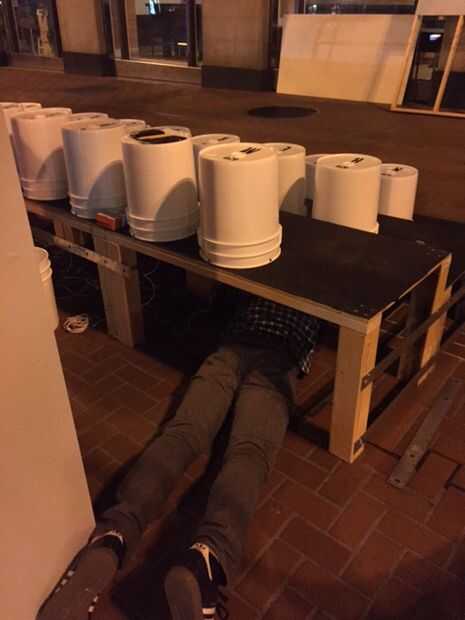 El proceso de instalación comenzó cargando cada pedazo en un U-Haul y transporte al sitio. Una vez allí, tenemos todas las piezas de la canalización vertical interno, descargados y comenzó a armarlos con tirantes metálicos para aumentar la estabilidad.