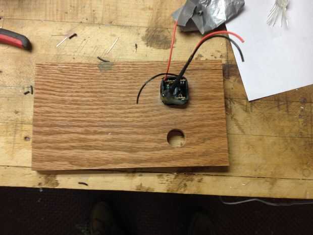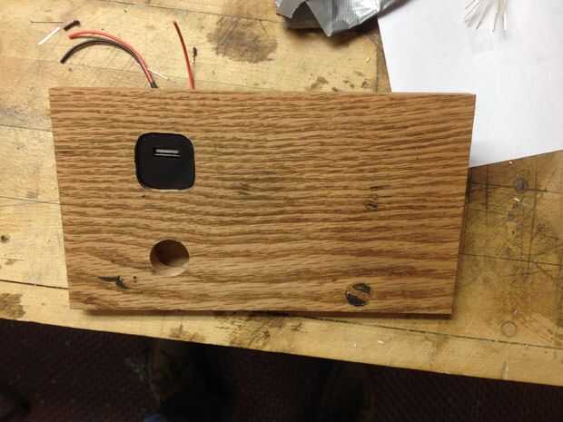 USB puerto para cargar un teléfono u otro dispositivo de la parte posterior de la caja de carga se abrió para atar en un LED blanco para gota de luz para encontrar el puerto más fácilmente. También até en un "poder sobre" dirigido desde el mismo circuito para indicar que la carga USB fue o no como controlado por el interruptor de palanca frontal.