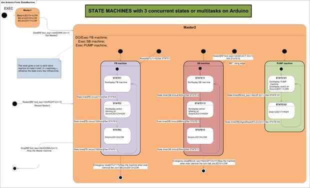 El microcontrolador puede controlar un maestro de la máquina que puede lanzar 3 diferentes máquinas de esclavo: