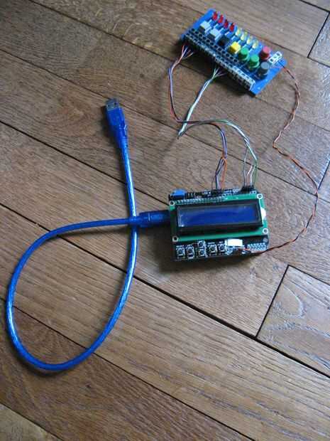 Utilizar un arduino uno con una pequeña interfaz (2 botones (ATU1, ATU2) para el interruptor de gatillo en y 3 LEDS (11, 12, 13) para la acción de salida) y un LCDKeypad.