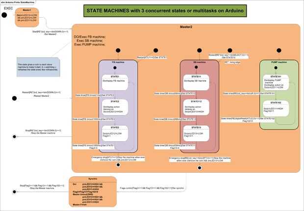 Cuando se lanzan las 3 máquinas y ejecuta, si en un momento, los 3 LED están en (un estado llamado "synchro" Esto está escaneando todo el tiempo), el maestro máquina es deshabilitar. Pulse el botón de abajo para reiniciar.