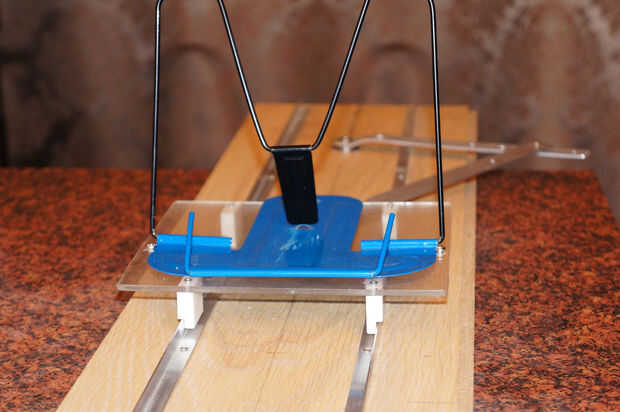 Como se puede ver, las palancas tienen varios agujeros. Debido a esto puedo cambiar la longitud de la palanca y la amplitud del movimiento del libro. Al principio sólo pude leer en un desplazamiento de la amplitud de 0,5 pies. Poco a poco, se convirtió en más fácil de leer y aumentar la amplitud. Un mes más tarde, puedo leer fácilmente en una amplitud de 1.5 pies. Mi vista ha mejorado significativamente y casualmente, sin formación larga y tediosa.