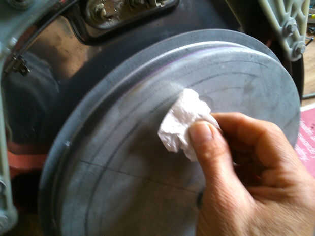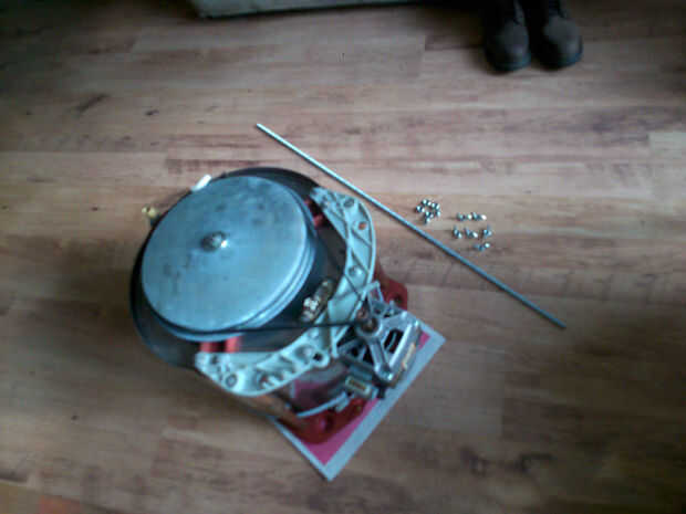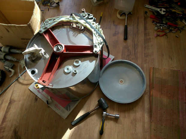 Quitar la polea del tambor tomaron un poco esfuerzo como esta máquina había sentado fuera en el jardín por dos años y era realmente sorprendido lo bueno todavía parecía cuando lo abrí.