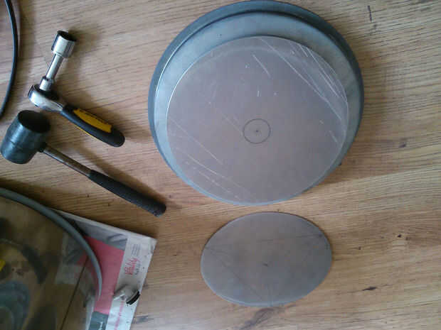 Estas son 2 de los discos de 10 pulgadas x 4 mm. También fueron comprados fuera de ebay y eran mucho más fáciles de perforar.