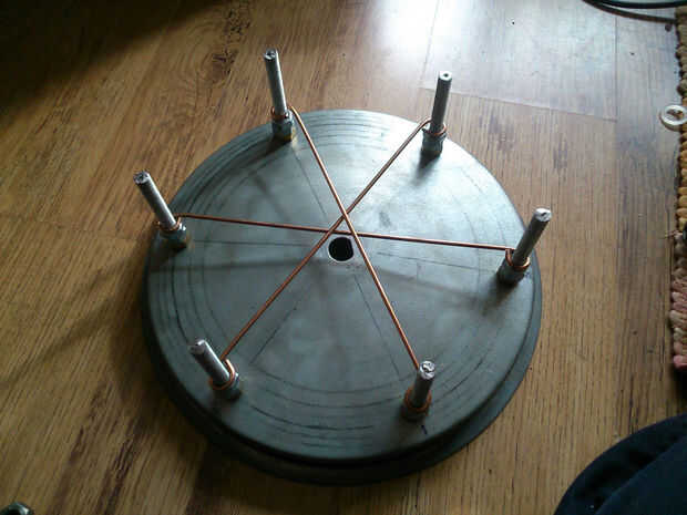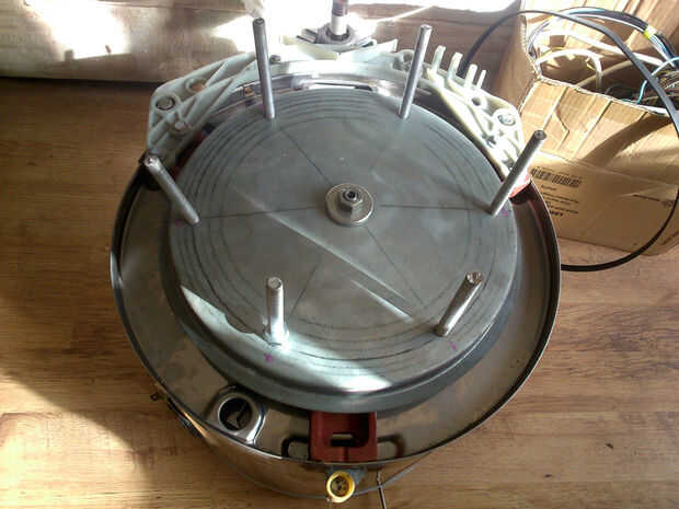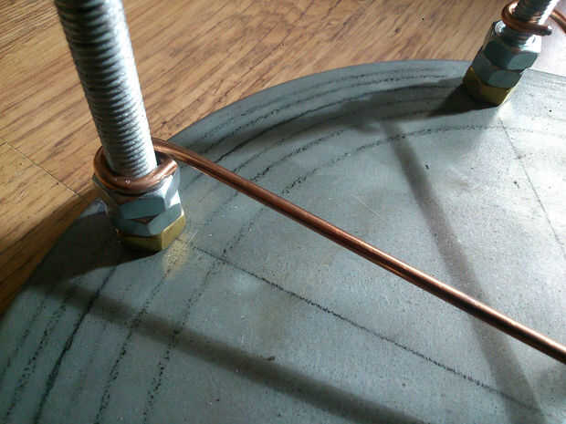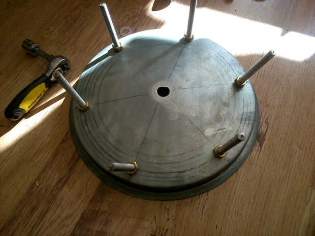 El problema que tengo encuentro después de insertar las varillas roscadas, porque la polea del tambor era convexa desde el centro y abultada desde su centro, estaba haciendo las barras inclinación hacia el exterior. Para contrarrestar esto, pensé en la necesidad de tirar de ellos hacia adentro hacia el centro y para ello, utilicé varillas de alambre de acero que ya tenía de proyectos anteriores. Tal vez, no es la mejor solución para este problema particular pero parecía funcionar y eso es lo que importaba.