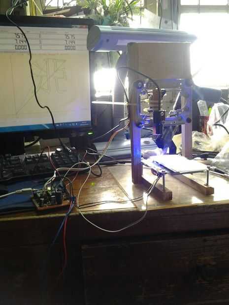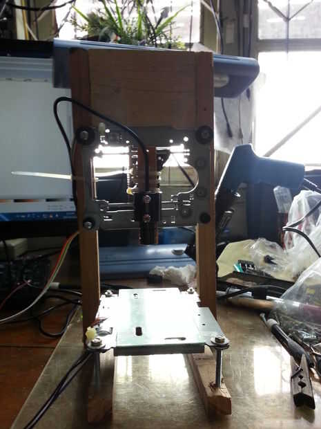 Vamos a montar! Este es el proceso de elaboración específico: la soldadura de la placa de circuito de Arduino Nano y a4988 conductor de pasos; utilizar las lamas de madera inútiles y motores de escalonamiento de las unidades desmontadas. La madera es no sólo fácil para realizar cambios, incluso con una sierra o una cuchilla, pero también respetuoso del medio ambiente. Recuerde siempre mantener los motores de escalonamiento en la x y perpendicular de ejes y para evitar la impresión torcida o había sesgado fotos.