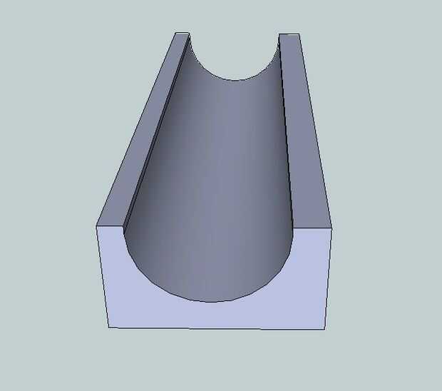 El canal que lleva los chicles puede hacerse de casi cualquier cosa. El gráfico muestra una pieza de 1 1/2 pulgada stock festoneado hacia fuera para hacer una halfpipe. Inglete los extremos para colocar y marcar la ubicación de un agujero en el lado de la máquina. Taladre el agujero. Pegar el canal en su lugar. Una taza de metal retén de aluminio de la hoja de la manera y usar clavos para fijar al lado de la máquina.