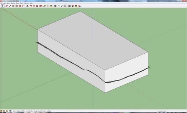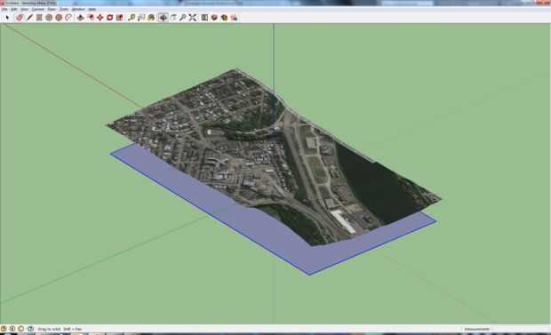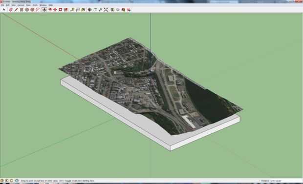 Órbita de su país o región según sea necesario para que puedan ver el rectángulo de abajo. Utilice el comando, "Proyecto de sobre superficie," extender su proyección muy por encima de su contorno del terreno. Usando el botón de selección, haga clic en el rectángulo y seleccione "Caras de intersecar con modelo."