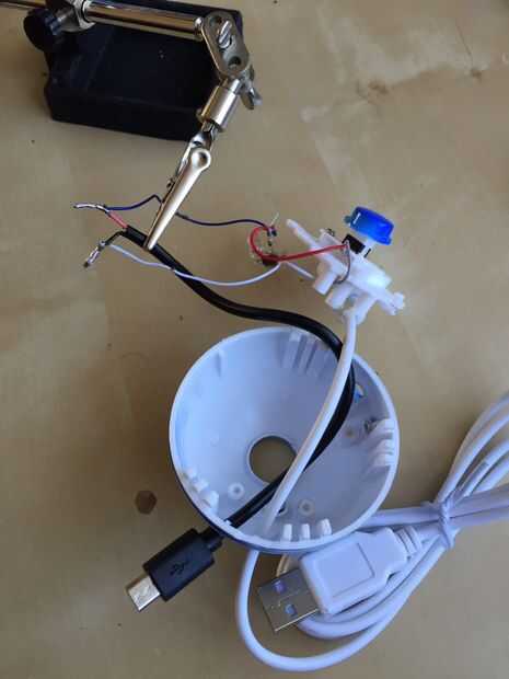 Conecte el conector micro usb con el cable correcto - el alambre vivo en la memoria usb es de color rojo y el negro es la tierra, los otros cables pueden recortar e ignorarlos.