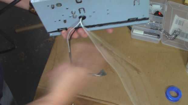 Antes puedo montar el amplificador para bien. He decidido que quiero un camino para el iPad. Usé un viejo cable de extensión. Corte el extremo hembra. Corte largo apenas caso. Soldar el extremo derecha en línea con el cable de alimentación para el amplificador. Con ellos con dos capas de calor retráctil. Metidos los cables en el amplificador y caliente pegado en su lugar. Enchufado el cargador del USB y el cable del iPad. Corrí el cable hacia fuera el agujero mismo que vino hacia fuera el cable del altavoz.