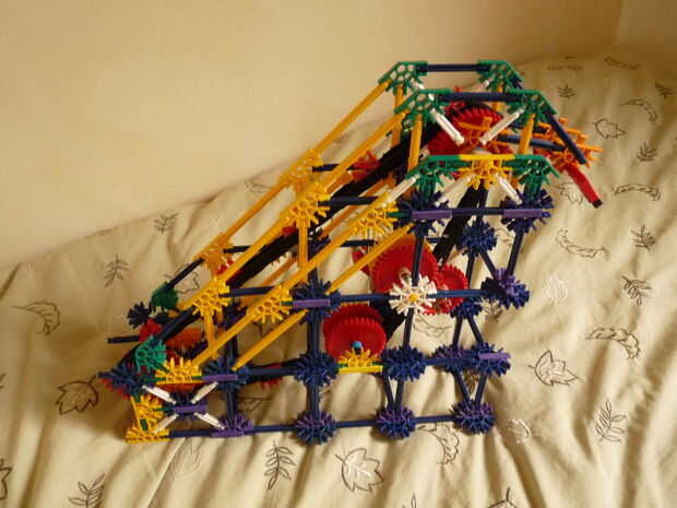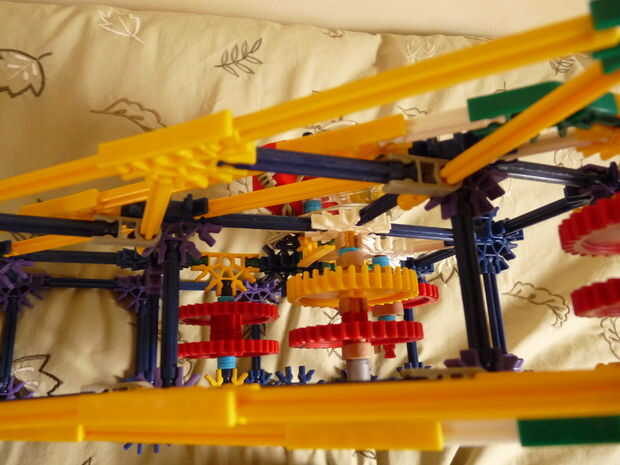 this is my first knex ball machine. Tiene 7 rutas. Voy a hacer las instrucciones de la elevación.