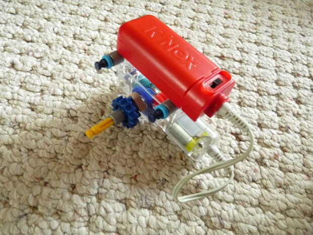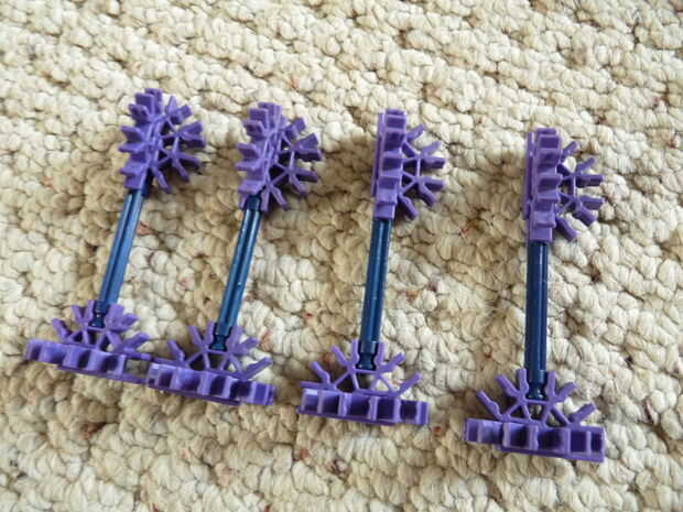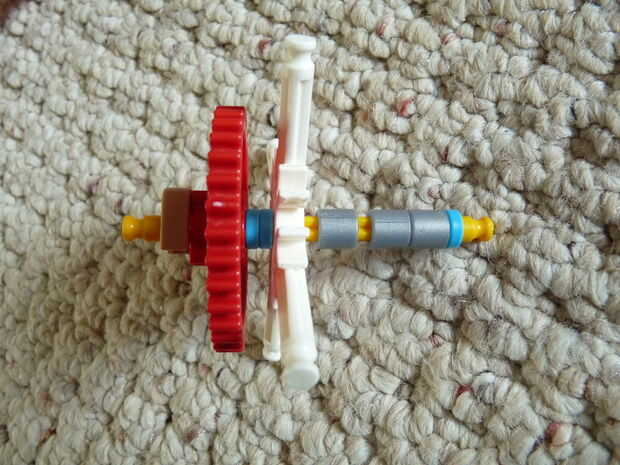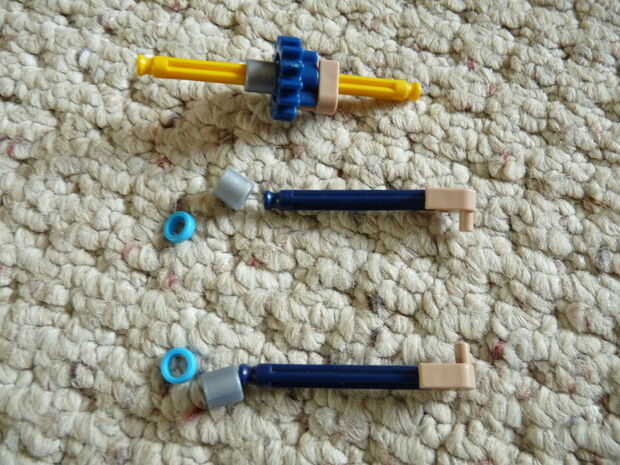 2: poner la barra del engranaje a través del agujero del motor y los otros dos como se ve. Coloque a los espaciadores.