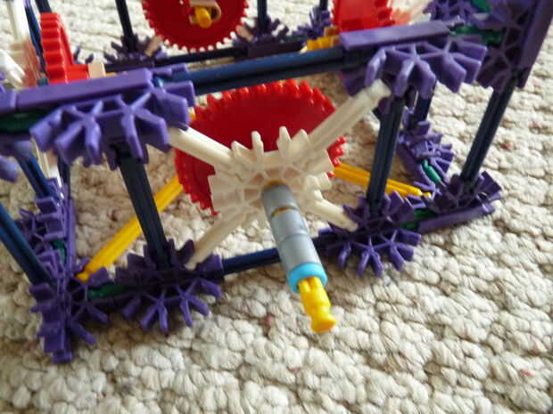 8: Añadir el amarillo engranajes con los dientes hacia abajo