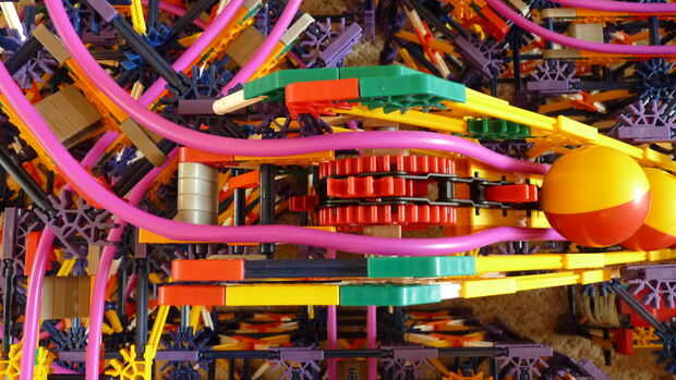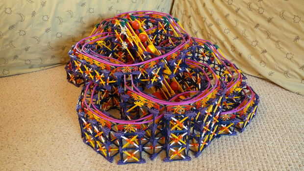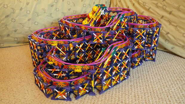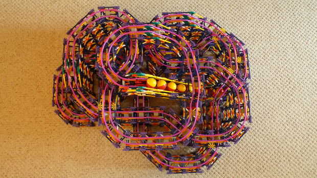 Aquí está mi última máquina de la bola, autopista de peaje. Cuenta con una pista de medir más de 32 pies, y un montón de características de bondad bobina, bucle, vuelta bancarizados que lleva una sola bola durante 20 segundos para navegar (además de la elevación). Te darás cuenta que es muy similar a mi anterior máquina de la bola, "Loopy". Sin embargo, aparte de ser mucho más grande, TurnPike también tiene apoyos extras añadidos, una nueva forma de banca los giros y una elevación ligeramente diferente, que permite a la montaña rusa para subir por el ascensor y únase a la tubería en la parte superior de la tubería, haciendo un bucle continuo.