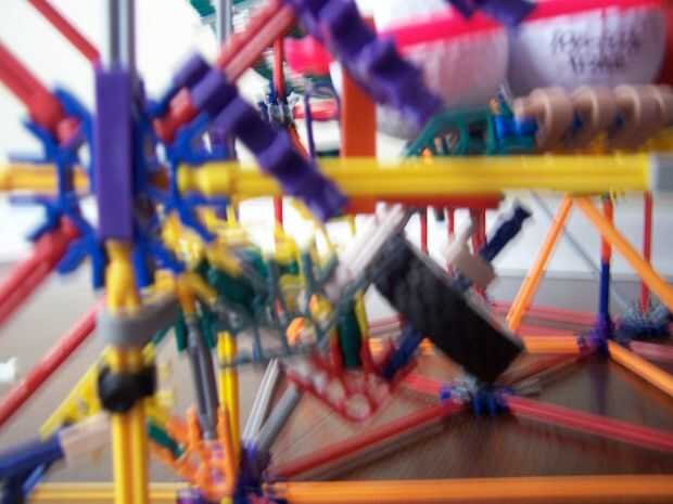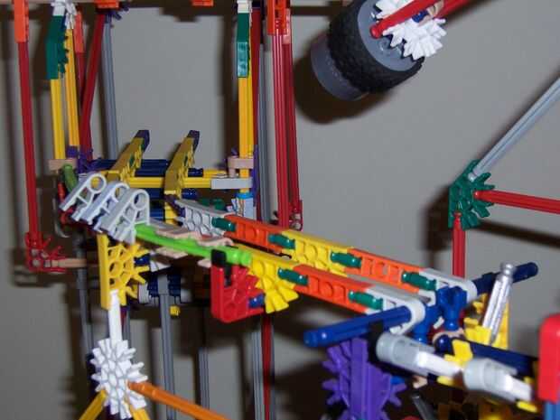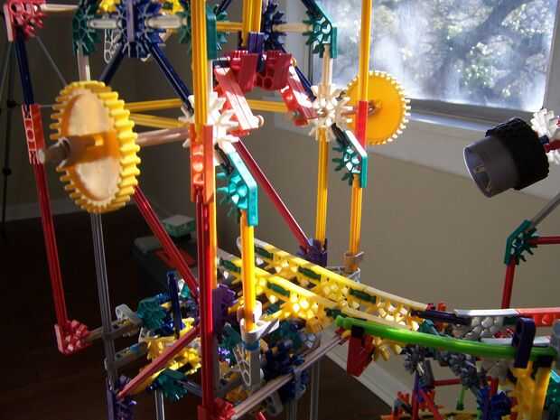 El otro problema era la anchura - la elevación de la barra amarilla no coincidirá con mi estructura de la barra roja, tampoco. He resuelto este dilema mediante la colocación de la elevación con un ángulo de 45o para el resto de la máquina. En esta posición, que ajusta perfectamente. Curva las trayectorias de entrada y salida y listo! Podría desafiar la gravedad.