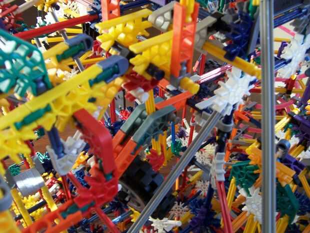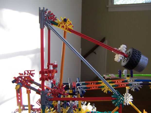 Toma dos bolas para trabajar. Una bola rueda por el piso "trampilla" y es detenida por la barra justo en el otro lado de la planta colgante. Cuando la segunda bola rueda por el piso, se detiene por la otra bola. Su peso entonces cae el piso y la barra con la otra bola, permitiendo que el primero en recorrer en una dirección mientras que el otro se inclina en la dirección opuesta por un soporte colocado debajo del separador. Tomó algún tiempo para obtener la cosa funcione a la perfección, pero una vez que logré parecía grande! Yo lo llamo el "separador de ruta de gotero".