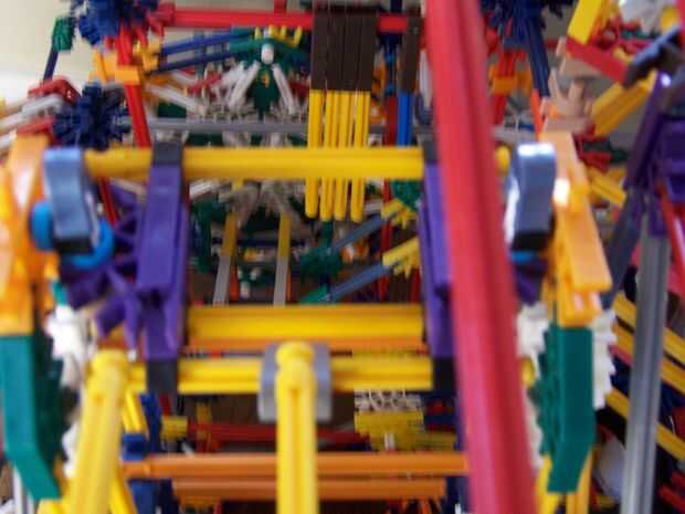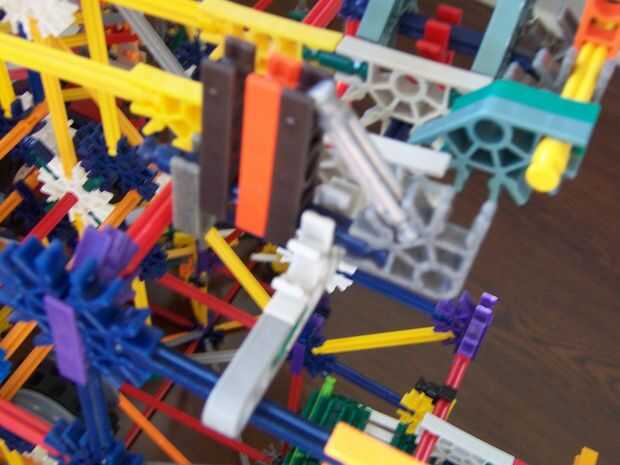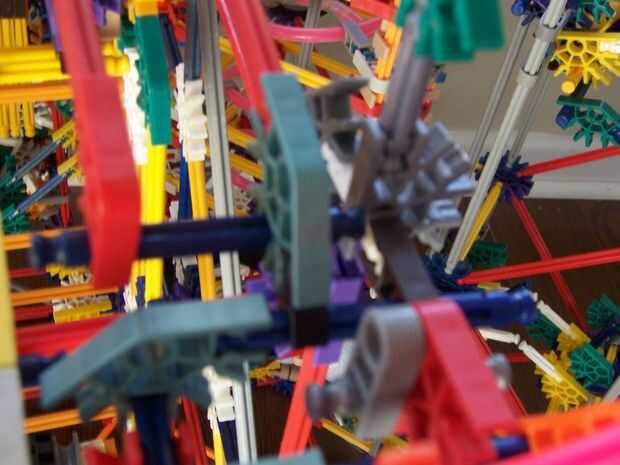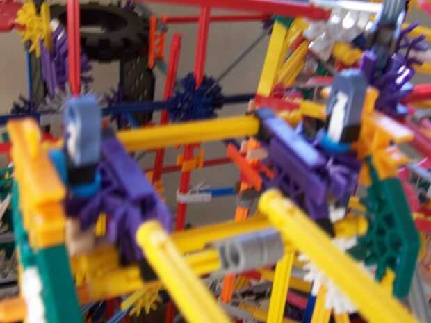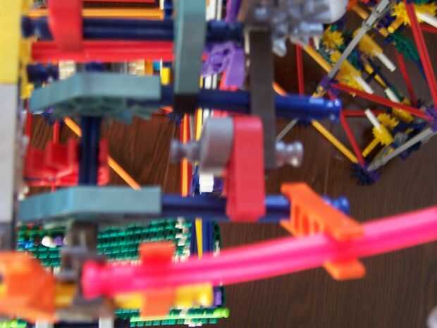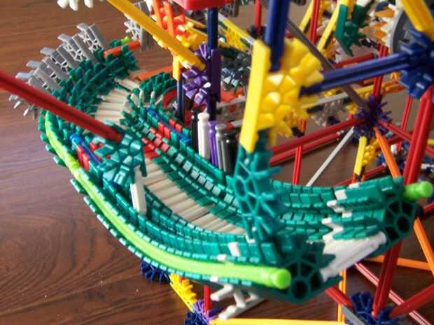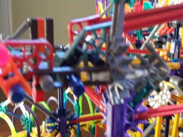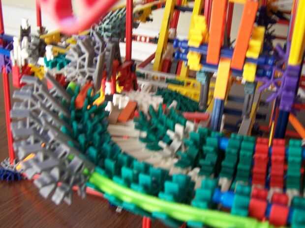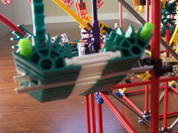 Ya he probado la máquina, he usado pelotas de golf. En un momento, dejó una bola de KVG en lo... y fue una dirección totalmente diferente! Tiene que ver con el peso de la bola. Modificar elemento de Kariah tomando la barra azul que normalmente consejos la canasta hacia adentro y en su lugar coloca dos clips Y en la barra roja swing más allá. Los golpes de cesta Y-clips y puntas hacia afuera. Pelotas de golf son tan pesados que caen inmediatamente hacia abajo, sobre la ruta 6. Pero K'nex bolas son más ligeros, y la protuberancia suave simplemente los golpes sobre la parte superior de la barra roja, sobre ruta 7. Fue un agradable descubrimiento, estaba acabando de espacio para mis elementos, y esto agrega mucho potencial.