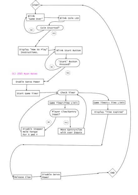 El diagrama de arriba muestra lo que hace este código. Si usted quiere su máquina "goto Inicio", parpadear luces y en general tienen un comportamiento más tradicional, usted necesitará el código usted mismo. Confía en mí, es para su propio bien.