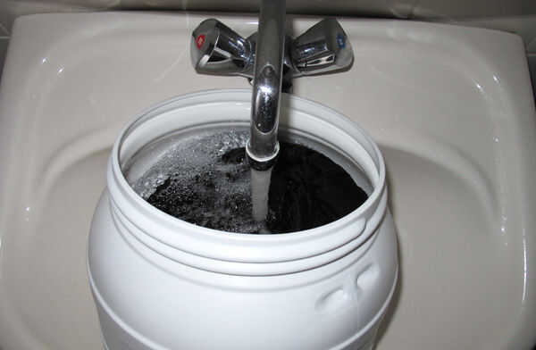 Llene la bañera con agua fresca y usando el mismo movimiento como el ciclo de lavado, asegurar que todo el detergente es lavado hacia fuera. Drenar el agua, por supuesto esta agua es mejor para reciclar ya que es más limpio.
