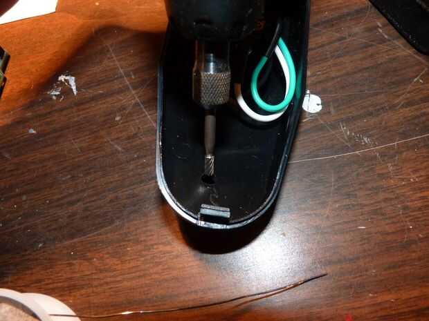 Es hora de conectar el mando a distancia. Primero tenemos que abrir con los dos tornillos y hacer un pequeño agujero en él.