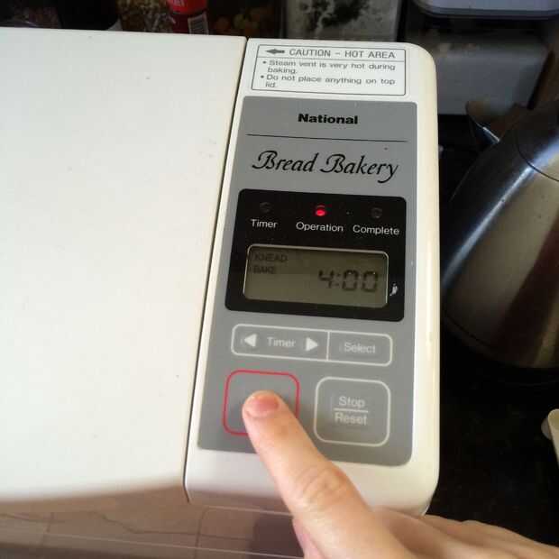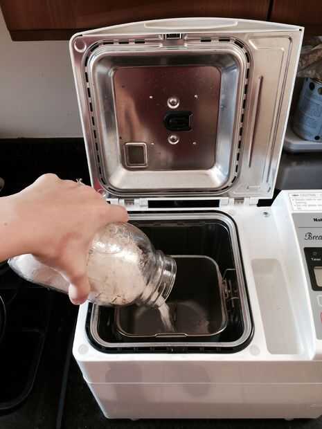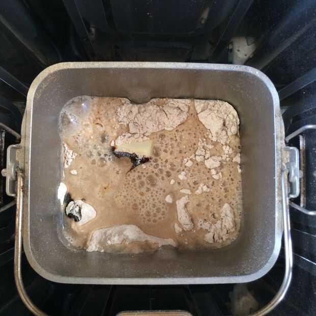 Añadir el último algunos ingredientes que no son de plataforma estable (manteca, melaza, agua y la levadura seca en el dispensador de levadura) y arrancar la máquina.