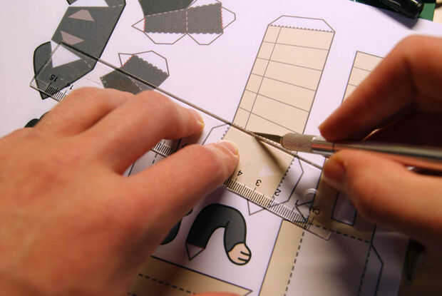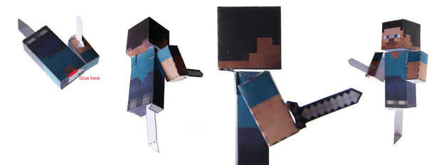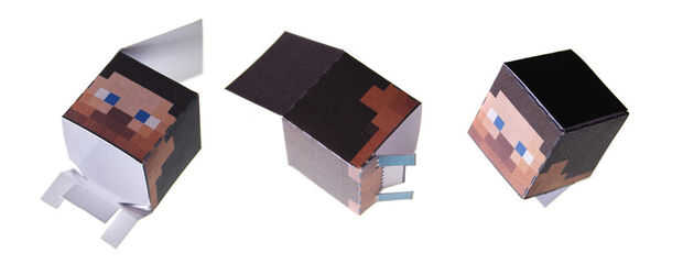 Comenzar con el tonto de Steve. Es importante que las 3 solapas de cuello (azul, blanco, azul) sólo se doblan alrededor de 30 °, porque la aleta blanco se pueda empujar hacia arriba más tarde por su espina dorsal y las aletas azul deben empujar la cabeza contra esa columna vertebral. Por lo tanto, si usted dobla ya a 90°, él conseguirá una rigidez en el cuello.