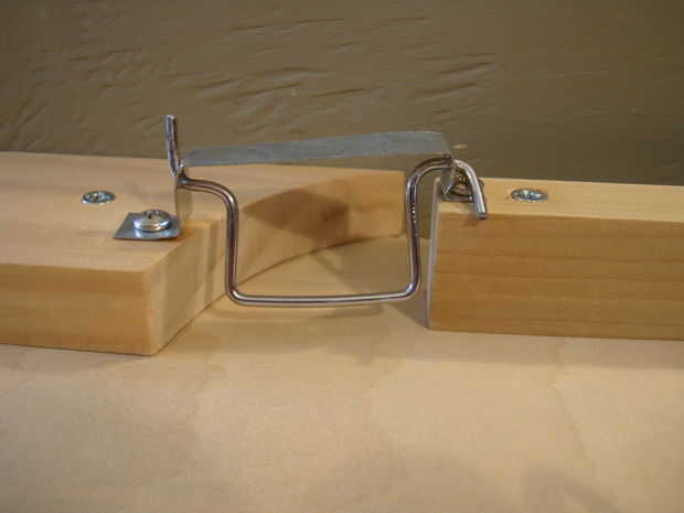 Usted necesitará usar alicates para doblar el metal de hoja y percha. Ahora de su 26 calibre espesor pieza de chapa se necesita para cortar una 4 1/8" largo por 1/2" amplia sección con tijeras. A continuación perfore cuatro agujeros con una broca de 1/8 bits. Midiendo desde la parte inferior, uno estará en 1/4". Luego el segundo en 11/16". La tercera a 3 3/32" y la cuarta a 3 15/16" a continuación doble el metal para arriba desde la parte inferior en 1/2". Luego dóblelo hacia abajo en 7/8" y abajo otra vez en 3" por último doblar para arriba en 3 5/8".