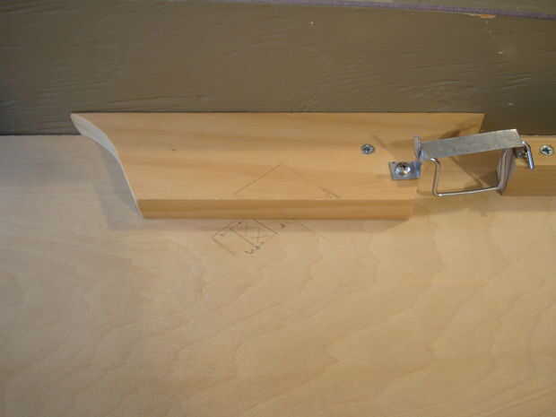 A continuación tome la 3/4" espesor por 4" de ancho por 12" pieza de madera de largo y sacar las siguiente medidas. Primero Mida la longitud total de 12" y corte a ese tamaño. Ahora el lado derecho de la parte más larga de la madera permanecerá este tamaño. En el lado izquierdo se mida 2" desde la parte inferior y también mida 8" desde la parte inferior. Ahora desde la primera medición usted hará un círculo cóncavo de este punto a la esquina inferior derecha. A continuación realizará la segunda medición y hacer un círculo cóncavo de esta línea a la esquina superior derecha de la madera. A continuación cortar las líneas con una sierra de banda o sierra de contornear. Una vez que han cortado esta pieza de madera hacia fuera Coloque en el tablero. La sección más larga de la madera irá contra el lado derecho de la máquina de pinball justo encima del canal. Medida 9 3/4" de la parte inferior del campo de juego de pinball. Esto es donde irá la esquina inferior derecha de esa pieza de madera que corta. A continuación perfore previamente dos orificios para montar esto a la Junta y atornille un tornillo para madera 1 1/4" en ambos orificios.