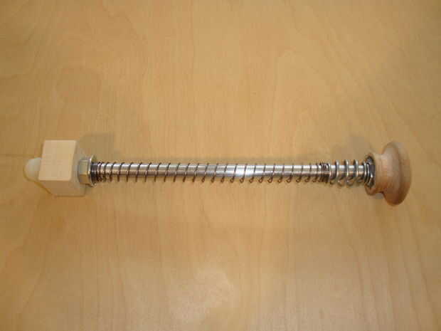 Tomar tus 3/4" espesor de 1" largo por 1" gran pedazo de madera y mide 1/2" de largo y 1/2" desde el lado. Perfore un agujero de 3/8" a través de él. A continuación tome el bloque y el lugar en el émbolo de pinball el canal agianst la parte delantera de la máquina. Tome un lápiz y dibujar un círculo a través de este bloque en la pared frontal. Ahora sacar el campo de juego y perfore un orificio de 3/8" en el mismo ángulo que el campo de juego. Este agujero debe recorrer todo el camino. Después de taladrar el agujero puede JB weld un 3/8 ID arandela en el interior y en el exterior. A continuación tomar la madera Pomito y perfore un orificio de 5/8" y sólo una profundidad de 1/4". Próximo JB soldar la perilla en el extremo del perno hexagonal. Asegúrese de que está recto. Una vez que todo se seque ahora puede montar el émbolo. Inserte el resorte del cañón en el perno hexagonal. Luego introdúzcalo en el orificio a través de la máquina de pinball. A continuación, inserte el émbolo resorte y tornillo en la tuerca/arandela hexagonal completamente hacia abajo. Ahora, inserte el bloque de madera y tornillo en la tapa de la tuerca hexagonal de nylon. Ahora estás listo para intentarlo.