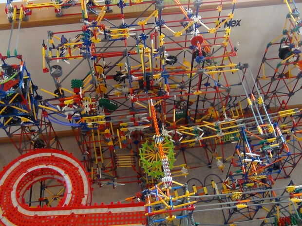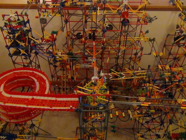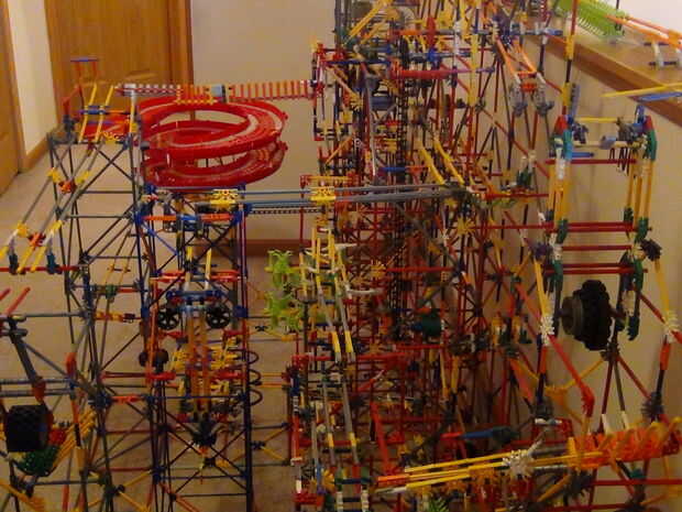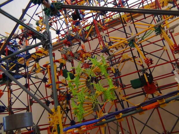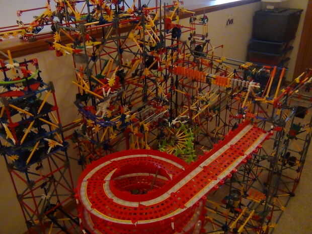 Lo especial de esta máquina de la bola es que dos caminos se conectan a la cornisa de mi casa y 2 de los 3 motores elementos de energía 2 o se levanta al unísono, no sólo uno. Este fue un divertido proyecto de construcción y que construí por lo menos un elemento en particular para cada path!