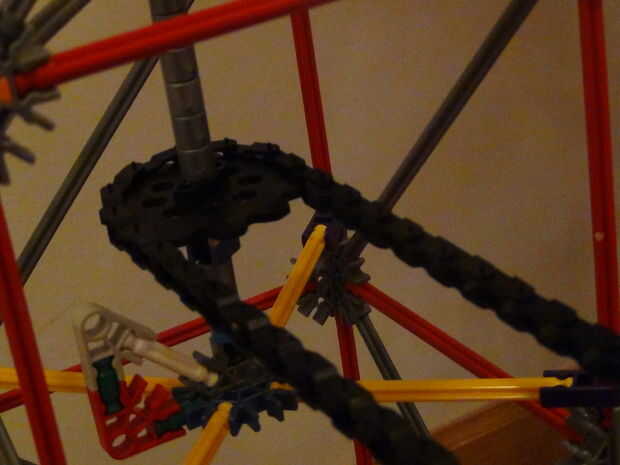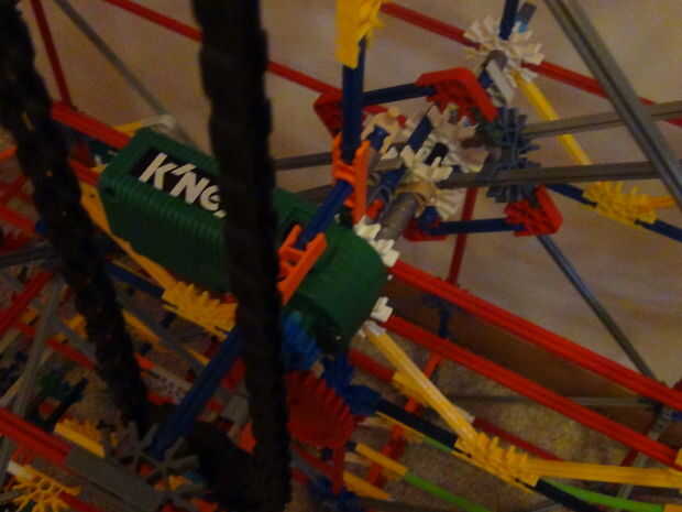 Como se dijo antes, 2 de los 3 motores de alimentación 2 elementos o ascensores al unísono, no sólo uno. Bueno, aquí hay algunas fotos para mostrar cómo todo eso funciona. Un motor impulsa los dos elevadores de brazo de rotación. El otro motor acciona el Panel de la gota y el engranaje amarillo Spinning.