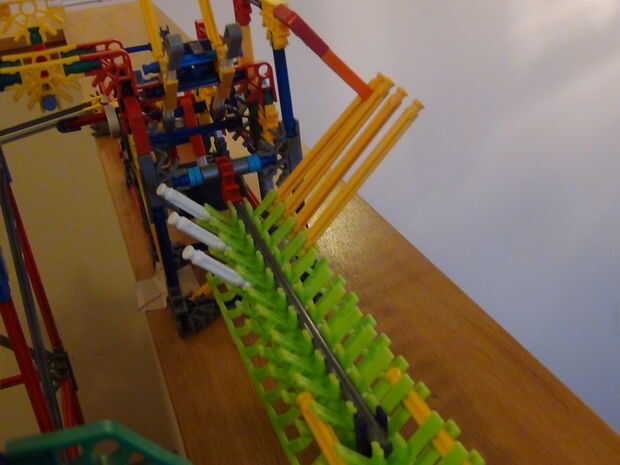 Hola compañeros knexers!Finalmente, después de mucho tiempo, he conseguido encontrar algún tiempo para que esta elevación de la máquina de la bola.El elevador del brazo de caída era primer visto en mi máquina de la bola de KVG paradoja.Esta es la seg