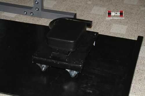 Se montaron dos 2 "x 2" x 7 "piezas en la parte superior para mantener mi asiento de Banco Herrero se deslice fuera del marco de madera contrachapada de 16" x 12". El soporte de acero sobre el asiento ajusta tanto como sea posible entre estos 2 "x 2" x 7 "pedazos y mi peso tiene el asiento hacia abajo.