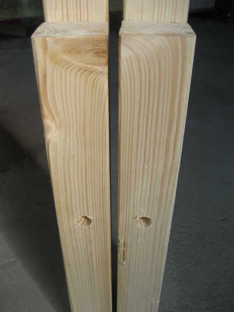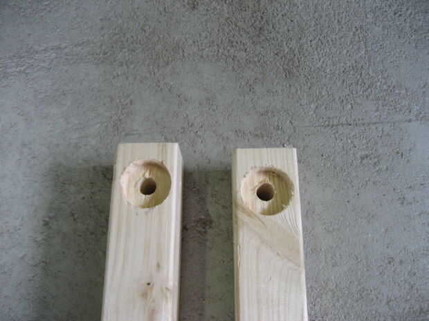 En el otro extremo de las vigas de 170 cm puede medir 3 cm desde la parte superior y perfore un orificio de 15 mm. De agujero de taladro un 1 cm profundo 32 mm de diámetro.