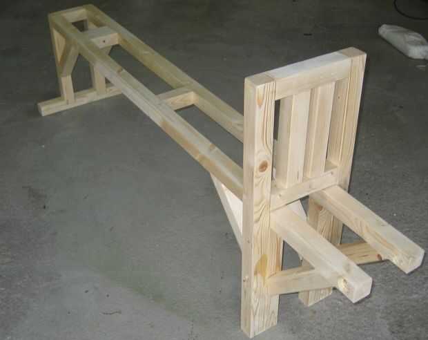 Atornillar los extremos largos (a 120 cm) "de la base de hasta ahora" en la parte superior las piezas de 42 cm.