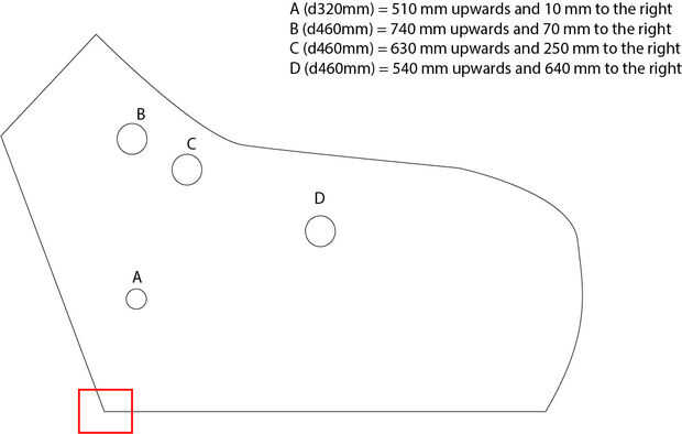 3) Sierra 3 titulares poligonales con en el centro de un diámetro de agujero 46 mm y 1 de diámetro 32 mm.
