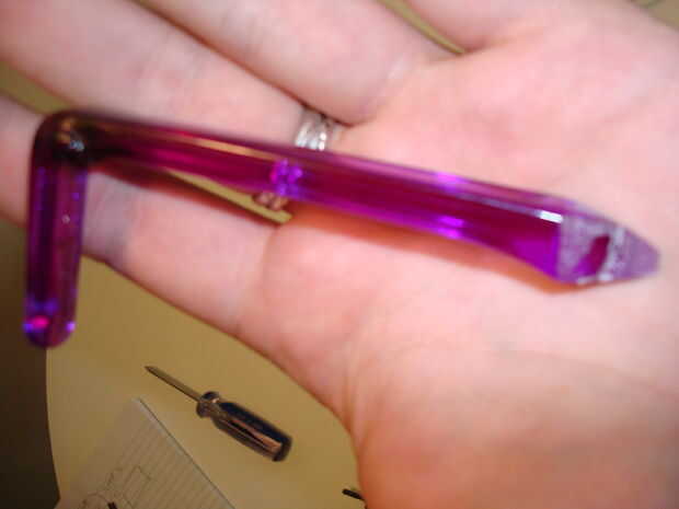 Utiliza un cepillo de dientes de plástico. Primero corté la cabeza con las cerdas. Entonces derritió un ángulo de 90 grados en la parte superior del pincel para que apoye en el motor.