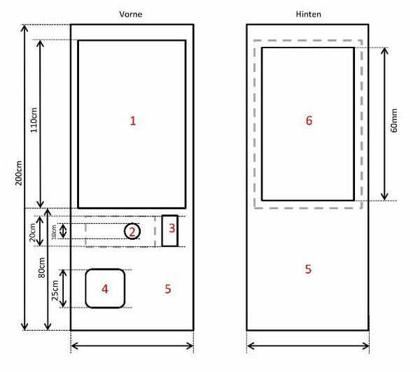 Ahora sólo tienes que recortar las formas de los cuatro lados de la máquina: la parte delantera, izquierda y derecha son lo mismo, espera de la salida de precio en la parte delantera y la puerta de la derecha para la electrónica.