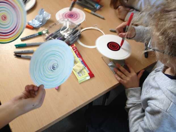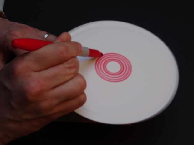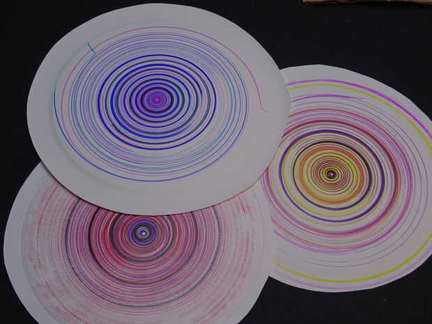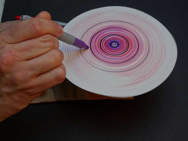 Encienda la máquina y presione ligeramente el lápiz sobre la placa como gira. puede mover hacia fuera como que gira crea espirales encantador o concentrarse en uno a crear círculos más pesados.