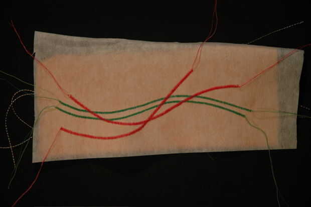 un método para fijar hilo conductor a una tela.¿Quieres más videos de eTextile How-to DIY eTextile, tutoriales y proyectos?Luego visitaremos el eTextile Lounge!Paso 1: Pone el hilo conductor en el lado de la moda de su tejido en el patrón de su circu