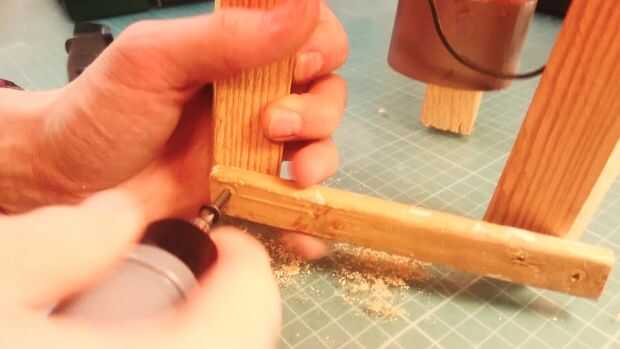 Necesidades de la máquina base, por lo que me marca Monte lugares para sedimentos. Voluntad de sedimentos se hace de barra de madera, perfore un agujero en cada barra y fijarla con tornillos. Siguiente paso es un montón de agujeros en la parte inferior del lavabo para cuchillas de perforación, harán un flujo de aire a través de estos agujeros.