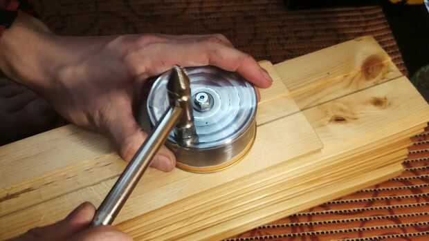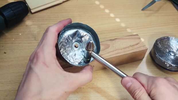 Siguiente paso es dar forma esférica a la parte inferior de la lata. Use un martillo pequeño o alguna pieza de metal. Una cosa como se debe tomar la última foto.